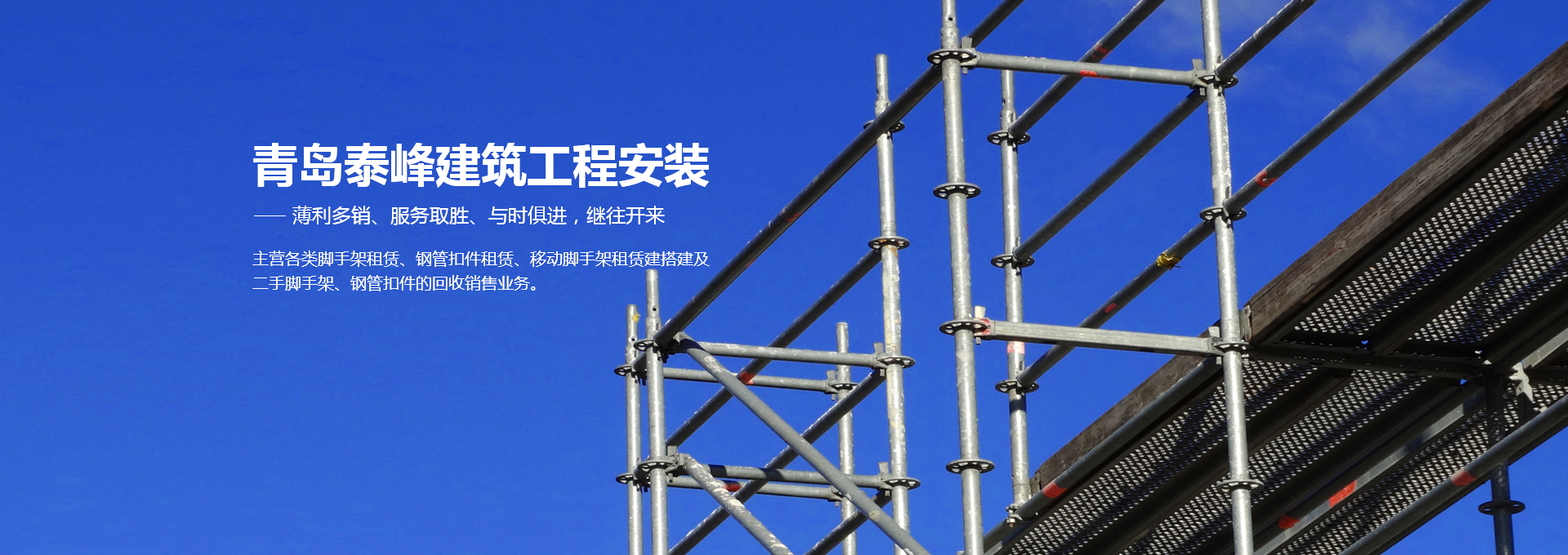 青島泰峰建筑工程安裝有限公司主營(yíng)各類(lèi)腳手架租賃、鋼管扣件租賃、移動(dòng)腳手架租賃建搭建及二手腳手架、鋼管扣件的回收銷(xiāo)售業(yè)務(wù)。公司實(shí)力雄厚,擁有鋼管約3000噸、扣件70萬(wàn)只、鋼笆7萬(wàn)多片塔吊、人貨電梯多臺(tái);總資產(chǎn)達(dá)到1000多萬(wàn)元。是一家具有腳手架搭建、水電安裝專(zhuān)業(yè)承包施工資質(zhì)的企業(yè),并成為青島市五金協(xié)會(huì)的會(huì)員單位。且多次參與高層建筑、建筑裝修、玻璃幕墻、橋梁、隧道、地鐵、電廠維修施工、造船等行業(yè)的施工,并獲得施工單位的一致好評(píng)。 人無(wú)信不立,有信則強(qiáng)公司以“薄利多銷(xiāo)、服務(wù)取勝”為經(jīng)營(yíng)宗旨...
